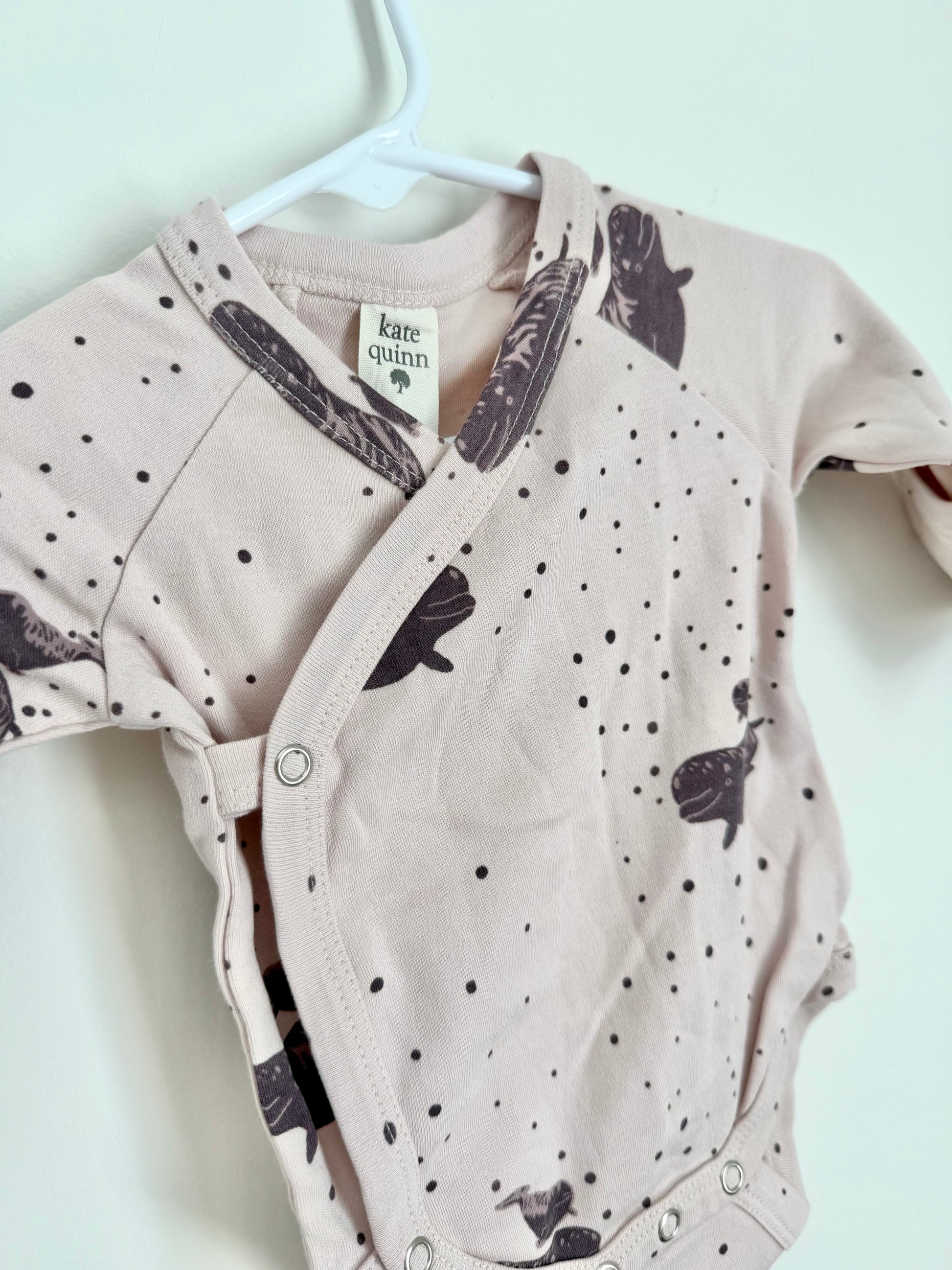 - This bodysuit features an adorable beluga whale print in calming purple tones